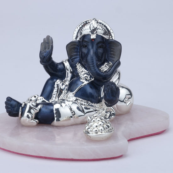 Crafted from pure 999 silver, the Silver Masand Ganesha Idol stands as a symbol of prosperity and auspiciousness. It features intricate detailing and a beautiful charcoal blue hue, making it a stunning addition to any space. Embrace its divine energy and elevate your home decor.