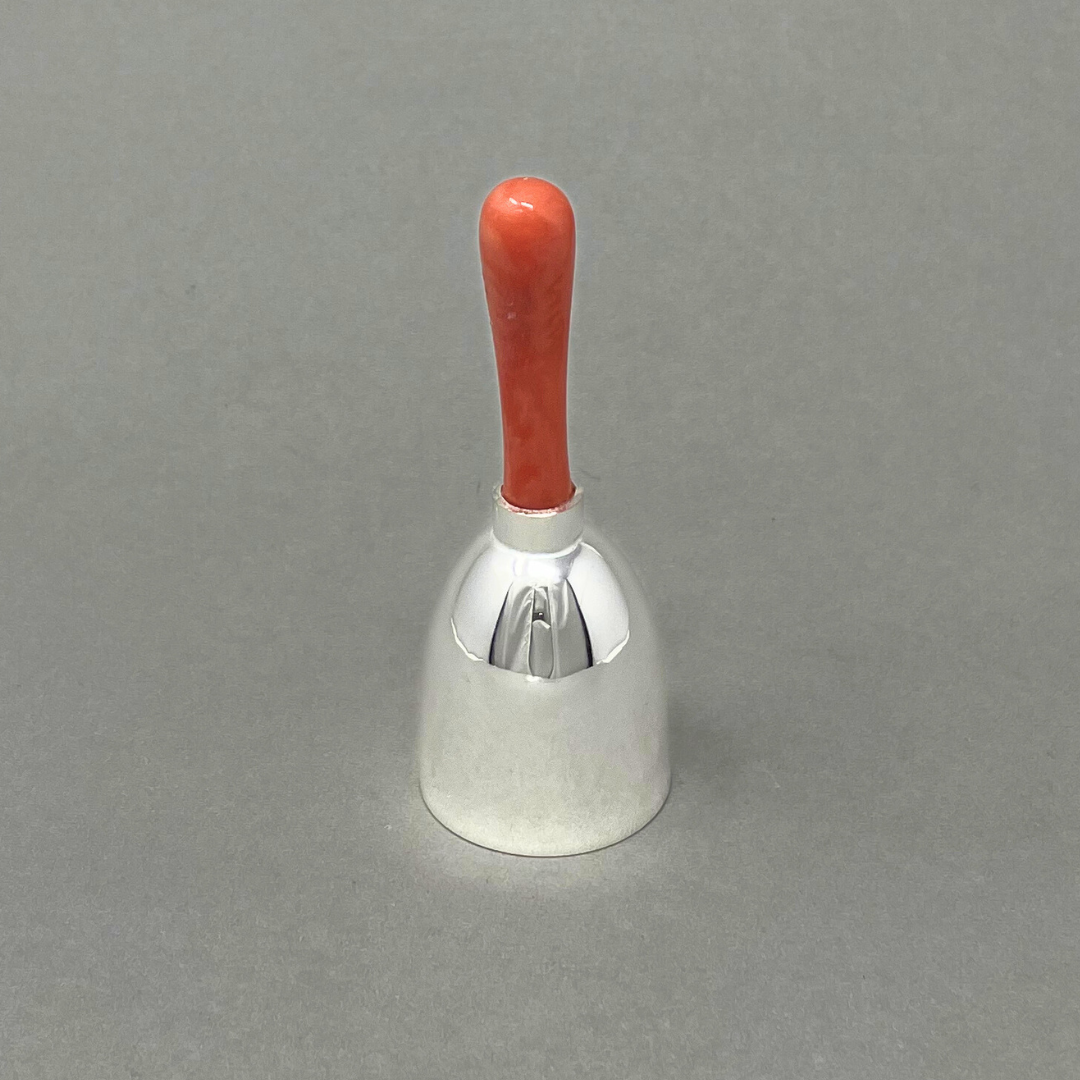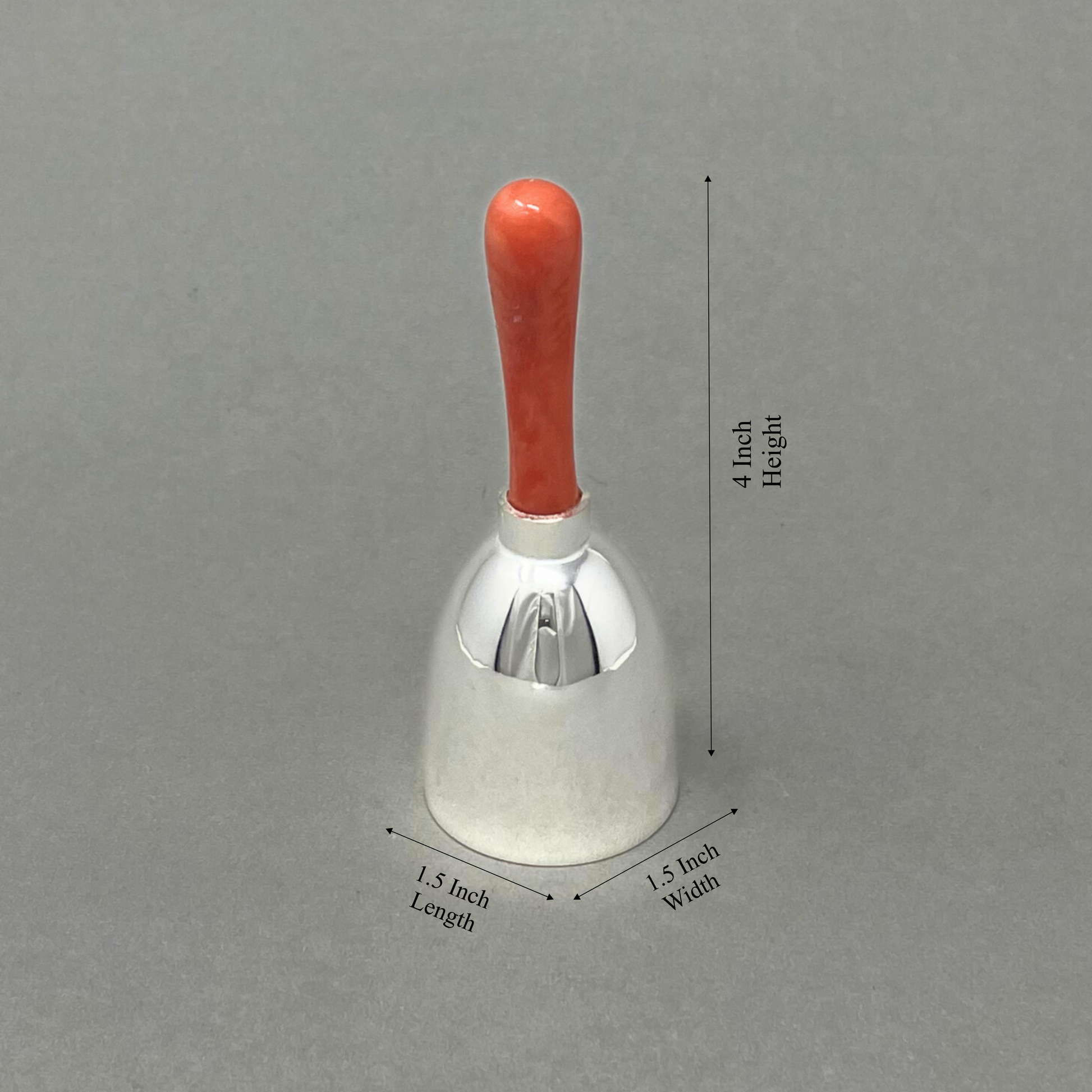 This small bell is an expertly crafted piece, made from brass with silver plating for a beautiful shine. The orange resin handle adds a touch of color to its elegant design. Perfect for use in worship and meditation, this bell adds a calming element to any spiritual practice.