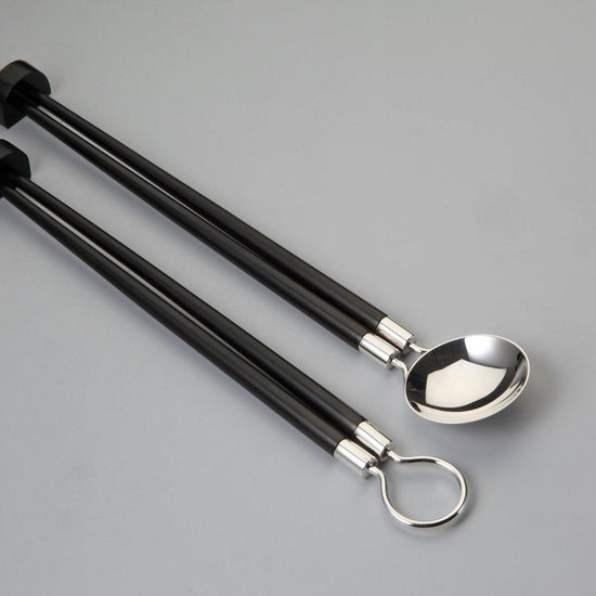 Soup Chopsticks with Ebony Wood Set of 3 Sterling Silver