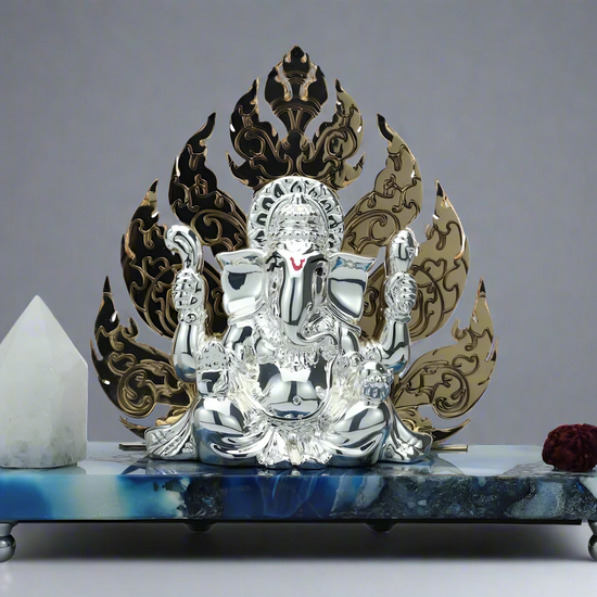 Made of pure 999 silver, Swarn Patra Ganesha is a high-quality and intricately designed figurine perfect for any spiritual or decorative needs. With the highest level of purity, this Ganesha symbolizes purity and prosperity, making it an auspicious addition to any space.