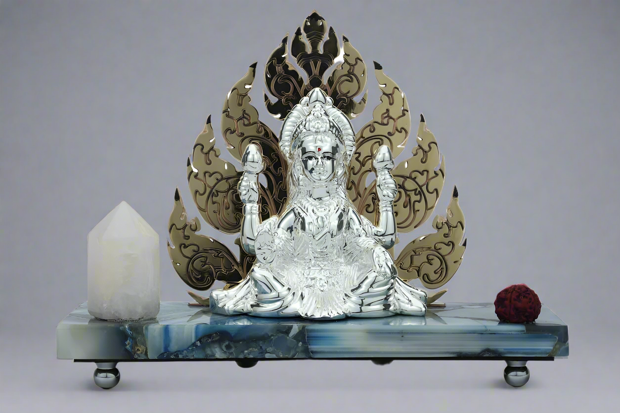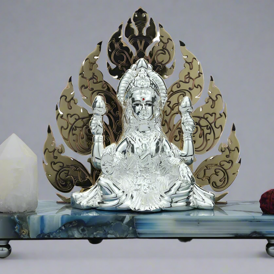 Crafted from pure 999 silver, the Swarn Patra Lakshmi is a symbol of prosperity and wealth. With intricate details and a traditional design, this piece serves as a beautiful addition to any home or altar. Bring luck and abundance into your life with this auspicious figurine.