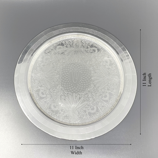 Crafted from brass and finished with silver plating, the Tilak Thali is an elegant and traditional piece that adds a touch of sophistication to any religious or cultural ceremony. The intricate detailing and shine of the silver plating make it a beautiful and timeless addition to your home.