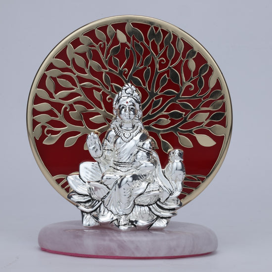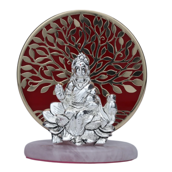 The Tree of Life Lakshmi Ji on Rose Quartz is a divine piece crafted from pure 999 silver. This intricately designed figurine represents prosperity, abundance, and spiritual growth. Enhance your home or personal space with its beauty and positive energy.