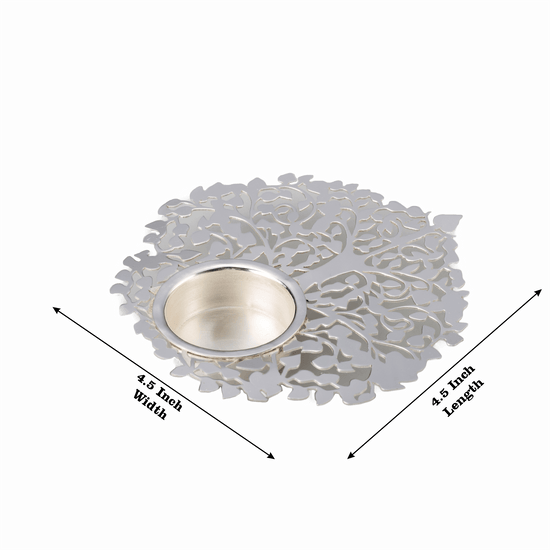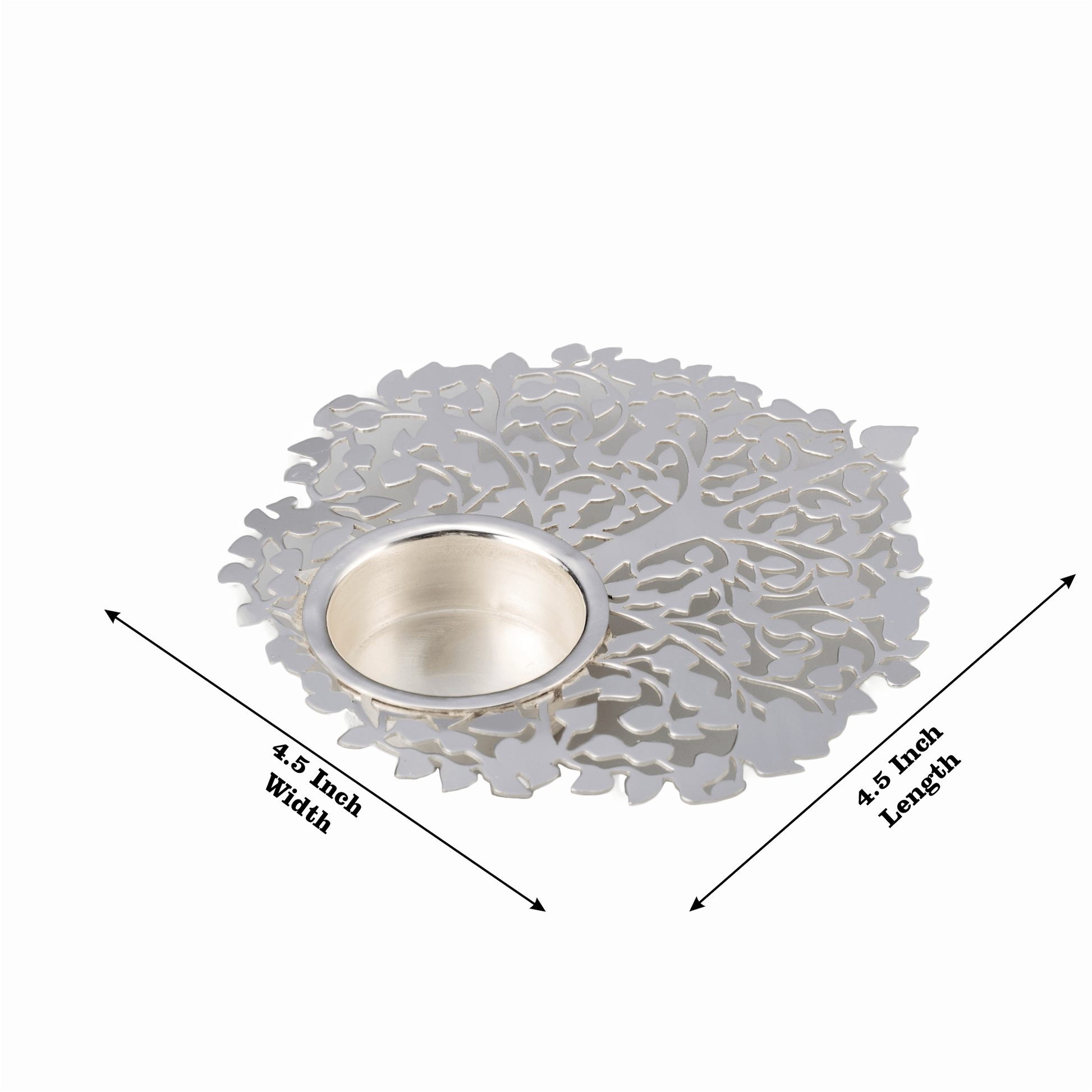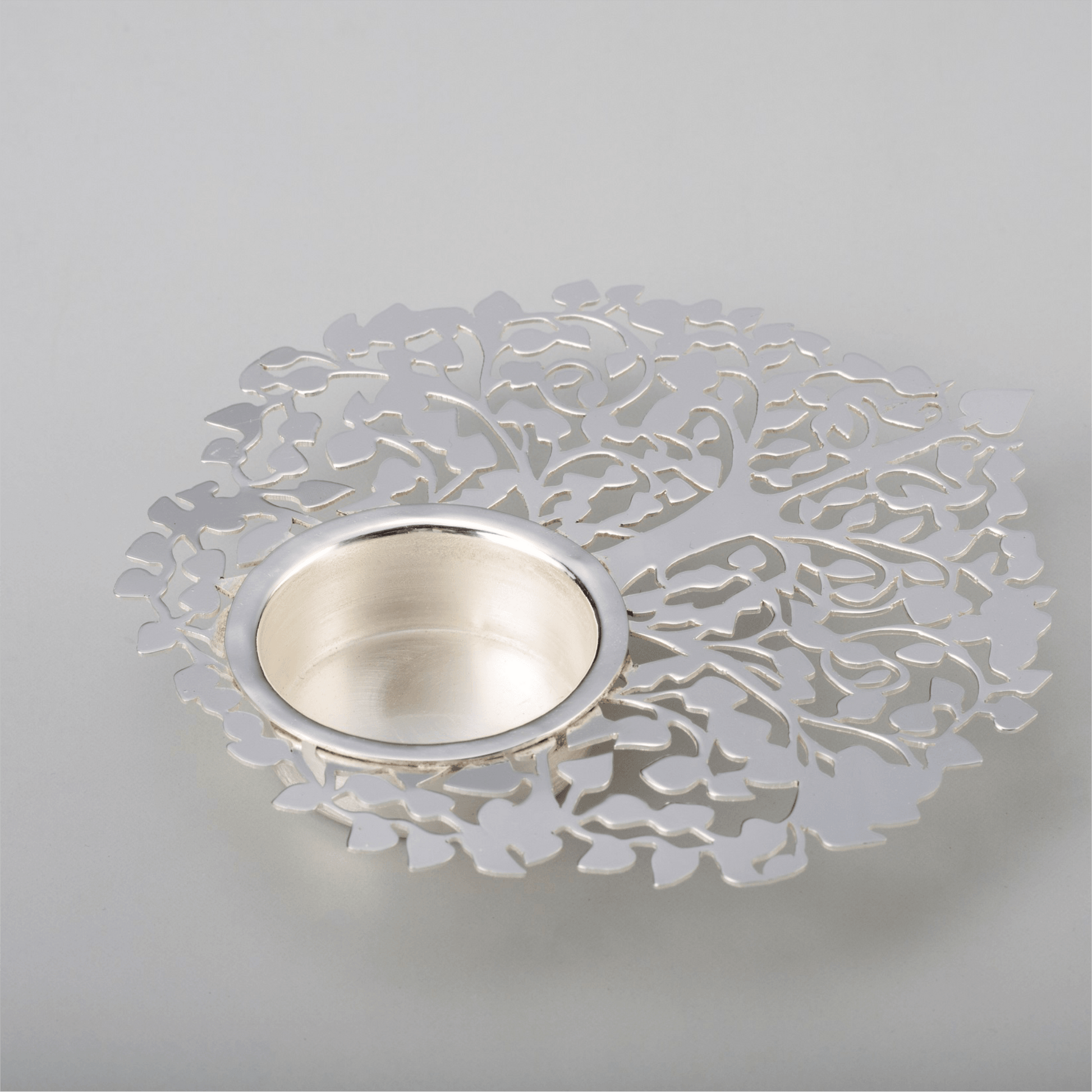 The silver-plated tree of life tea light holder combines artistry and functionality, elevating your home decor. Crafted with brass, this stunning piece embodies the timeless beauty of the Tree of Life symbol, serving as a captivating tea light holder that enhances your home's ambiance day or night.