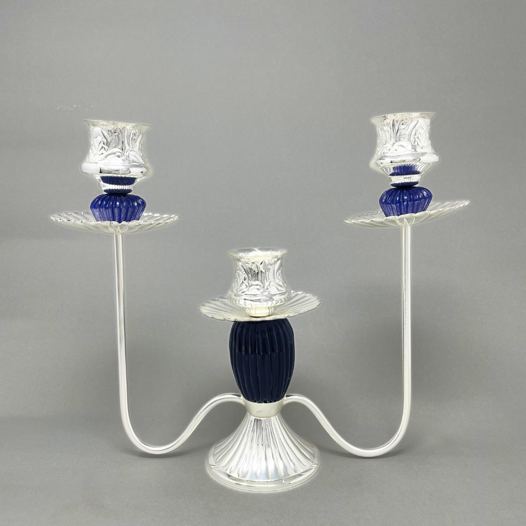 Crafted from brass and silver plating, the Trio Classic Candle Stand is a sleek and elegant addition to any home decor. This stand can hold three candles, creating a warm and inviting atmosphere for any occasion. Enhance your space with a touch of sophistication and functionality.