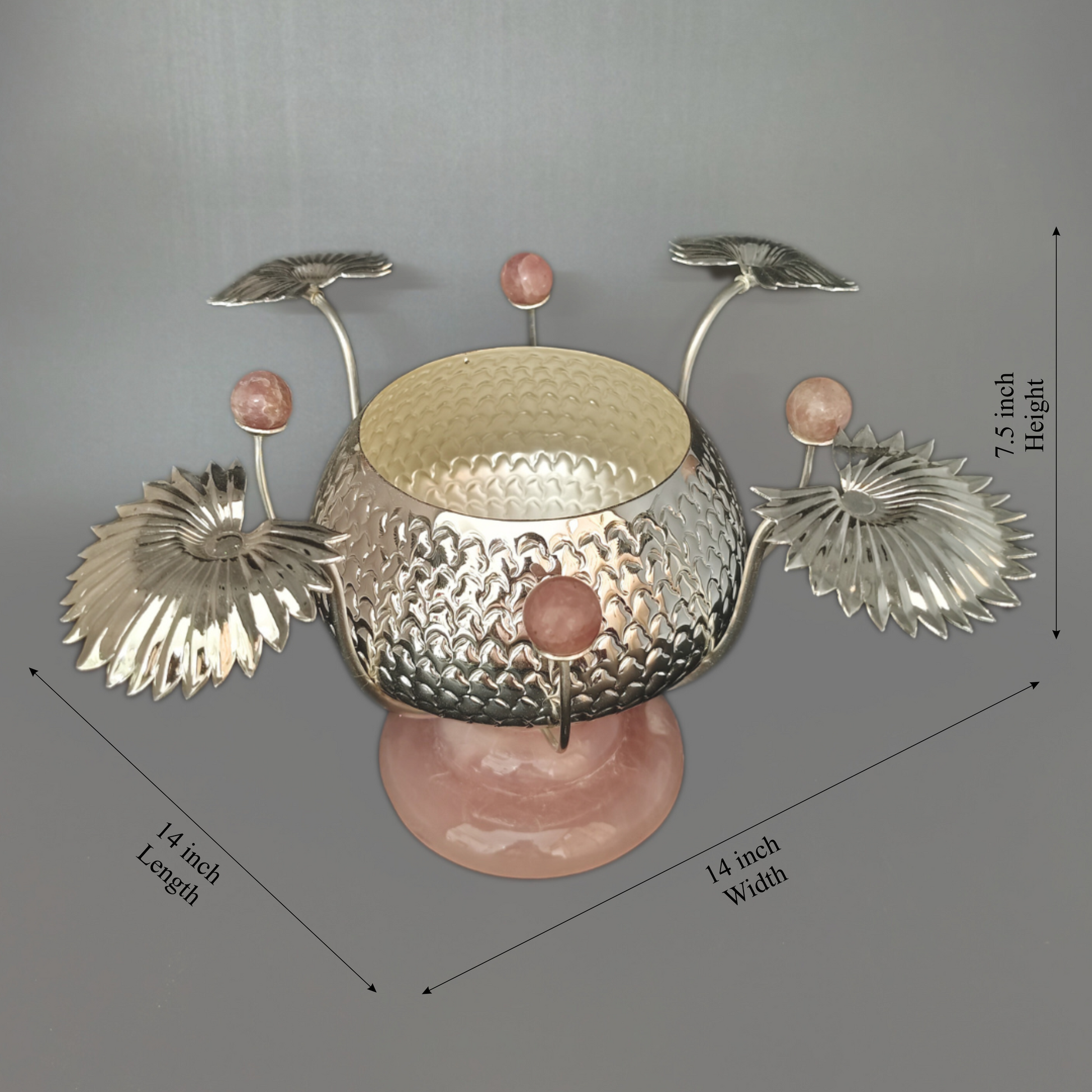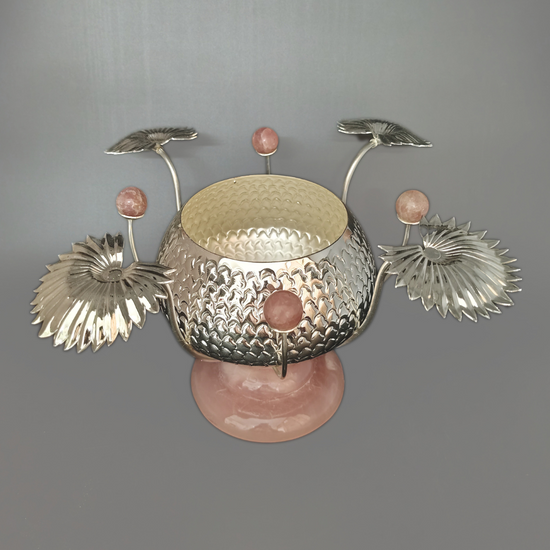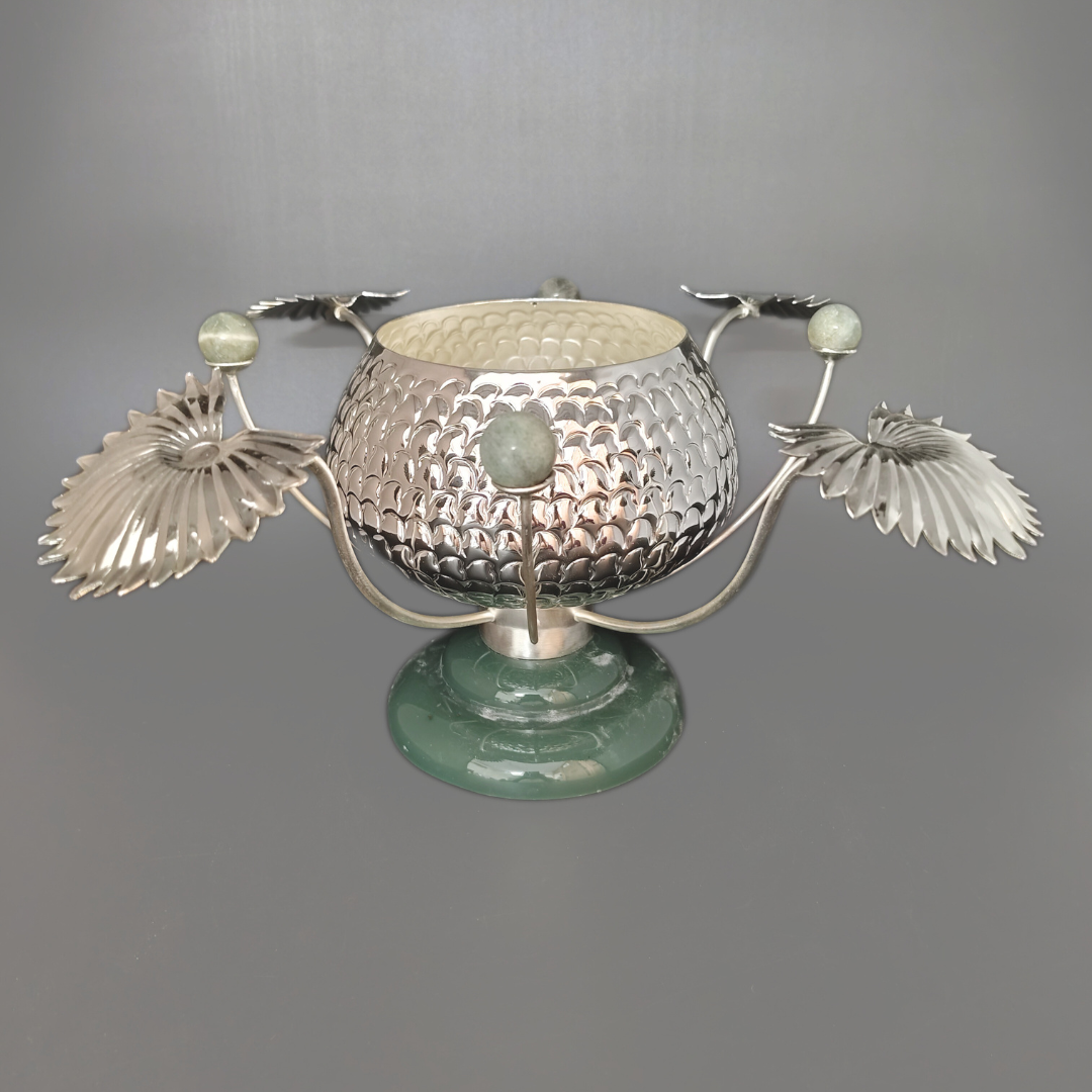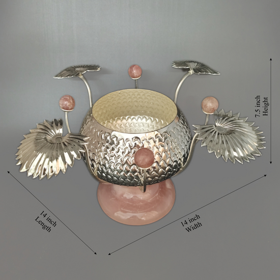 Expertly crafted, this Tropical Centerpiece features stunning brass and silver plating. This elegant addition to any table setting is sure to impress guests and add a touch of luxury to any event. Handmade with precision and attention to detail, it is a must-have for any tropical-themed decor or occasion.