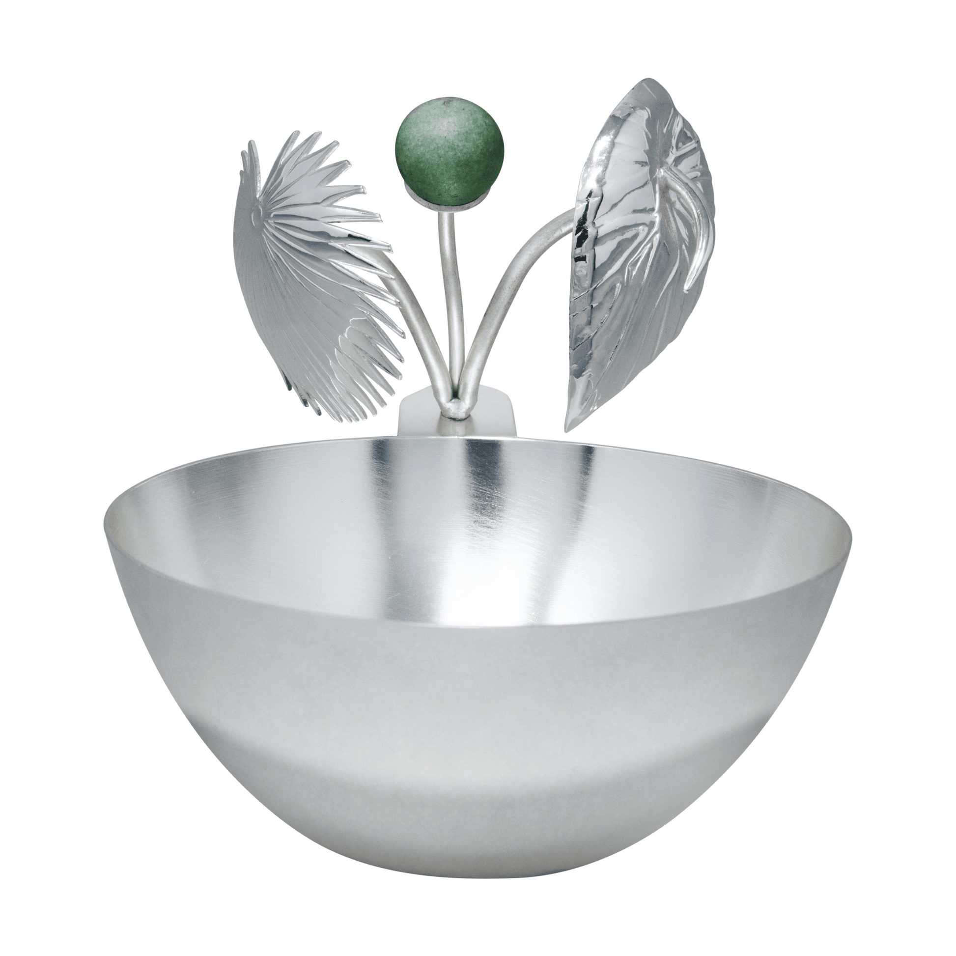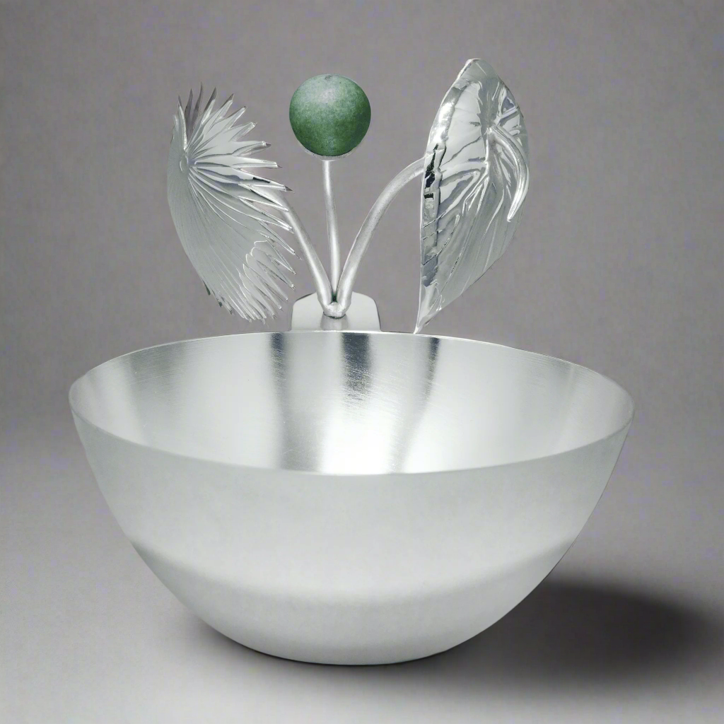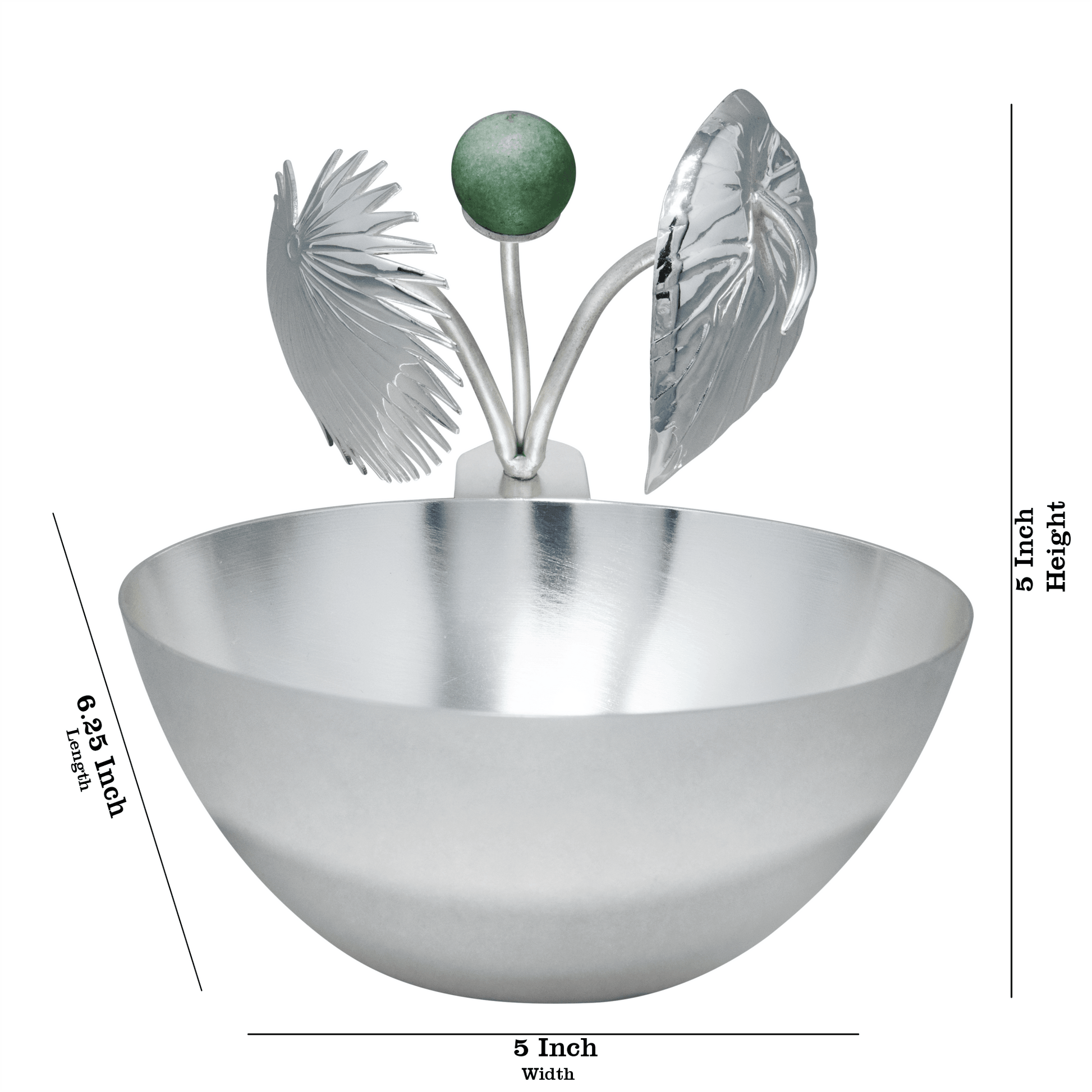 Add a touch of tropical elegance to your table with exquisite brass bowls featuring silver plating and a vibrant green resin knob. Perfect for serving or display, these bowls seamlessly blend style and functionality