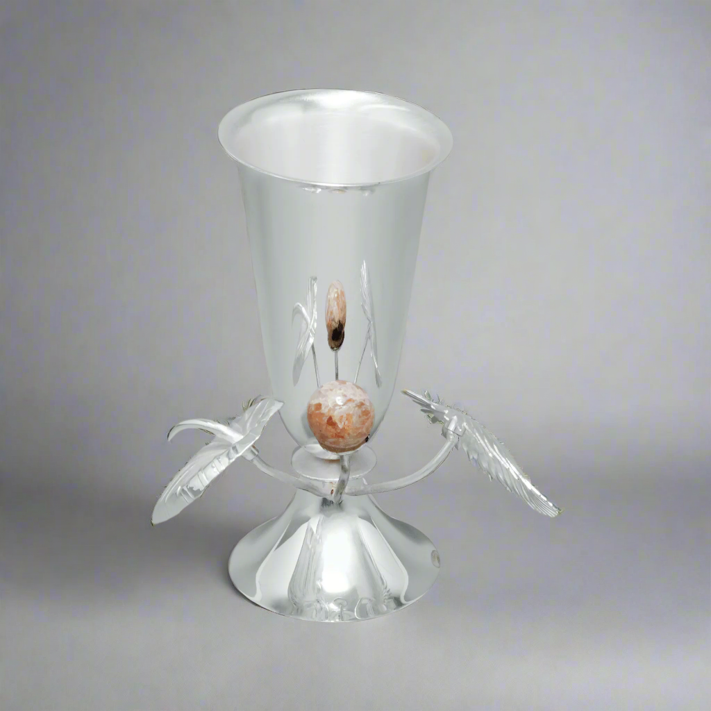 Elevate your décor with this exquisite tropically designed vase, crafted from premium brass and adorned with elegant silver plating. Perfect for adding a touch of luxury to any space.
