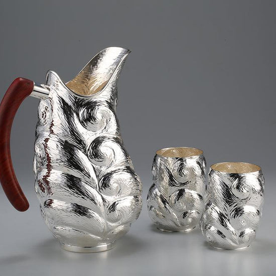 Wavy Textured Jug Set with Red Wood Handle Set of 3 Sterling Silver