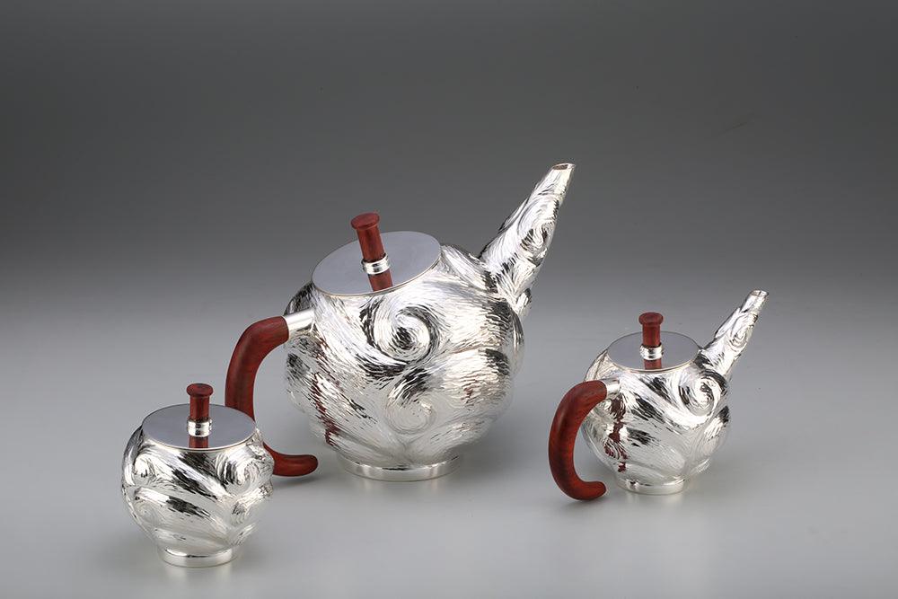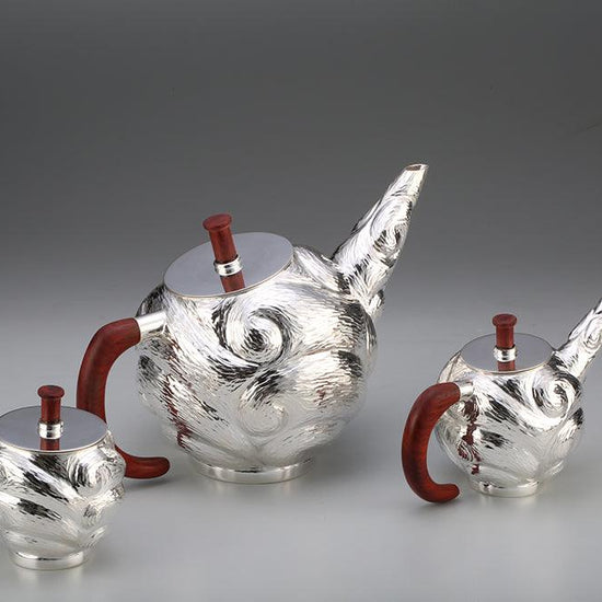 Wavy Textured Tea Set with Red Wood Handle
