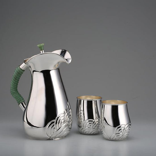 Whirl Jug Set with Indian Jade Stone Handle Set of 3 Sterling Silver